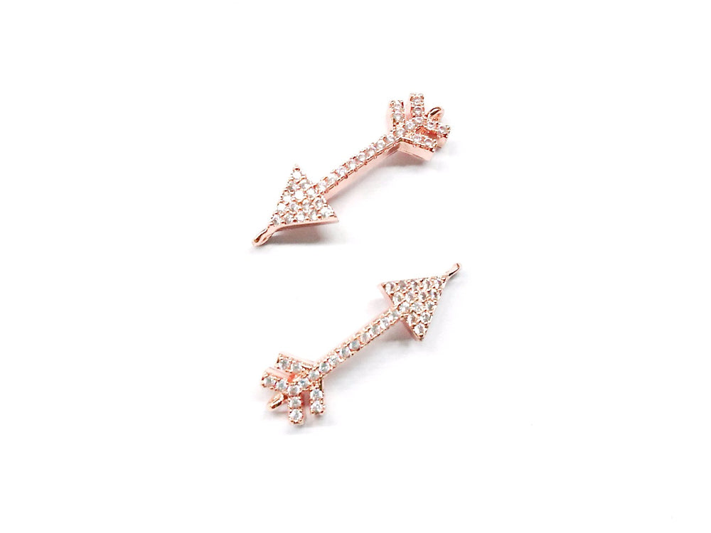 Connector, Brass, Cubic Zirconia, 7x22mm, Arrow, 1 Pc | 銅連接配件, 方晶鋯石, 7x22mm, 箭頭, 1個