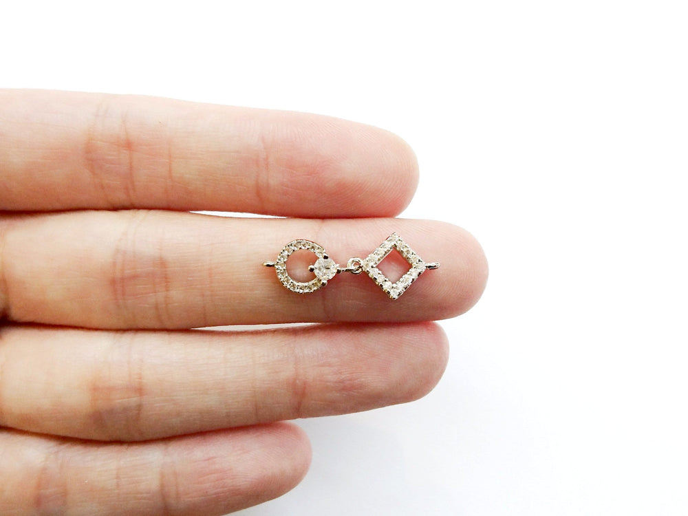 Connector, Brass, Cubic Zirconia, 9x24mm, 1 Pc | 銅連接配件, 方晶鋯石, 9x24mm, 1個