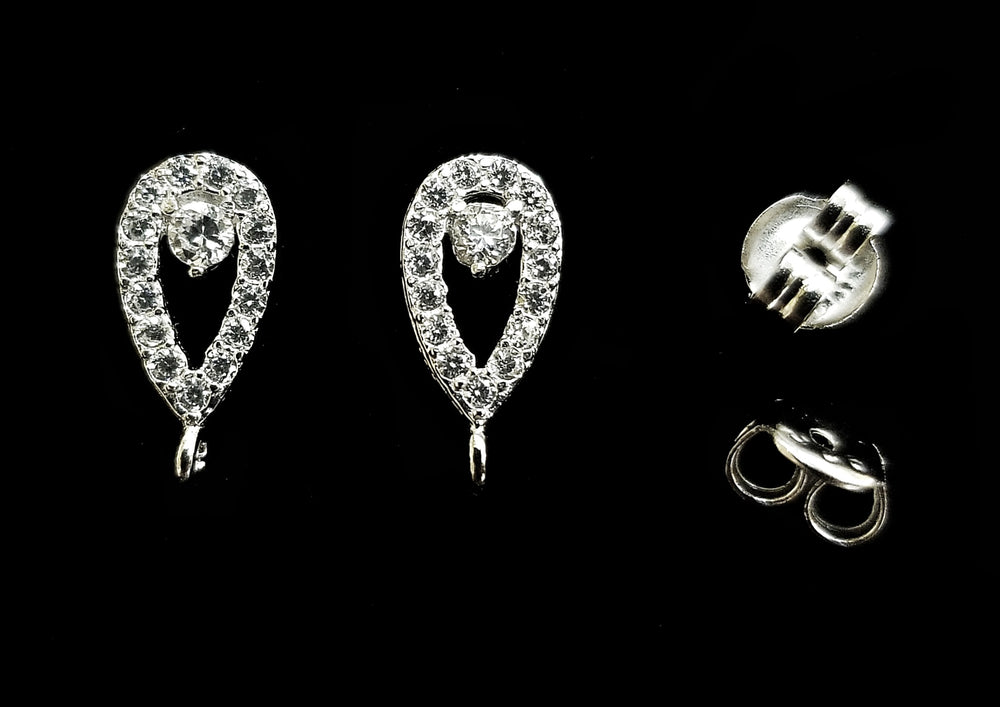 Earstud, Sterling Silver, Platinum color, clear CZ stone | 925銀閃石耳針, 有圈