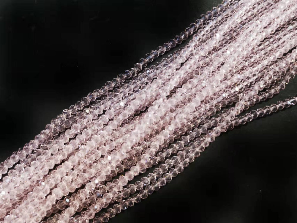 2x3mm faceted rondelle glass beads, Transparent Light Pink, 1 strand