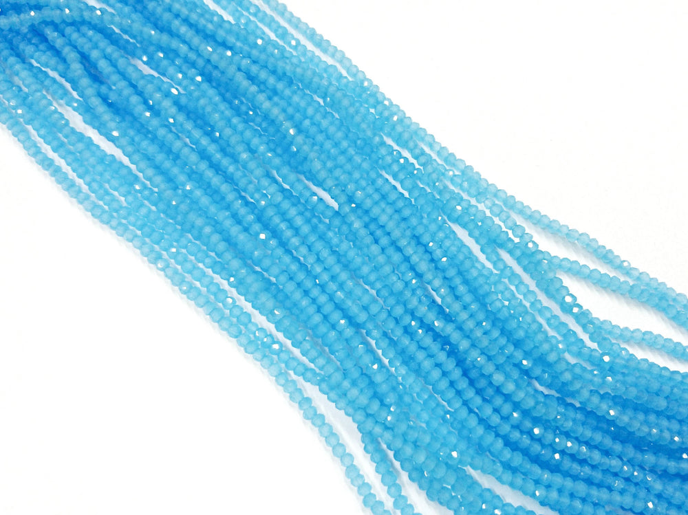 玻璃珠, 2x3mm, 切面扁珠, 果凍天藍色 (#55), 1條
