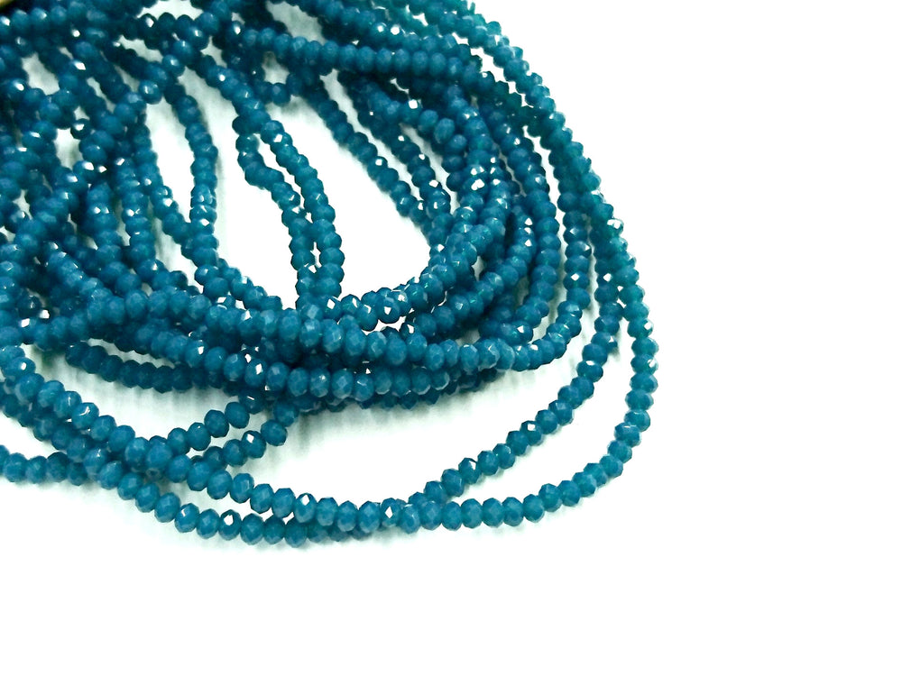 玻璃珠, 2x3mm, 切面扁珠, 果凍藍綠色 (#562), 1條