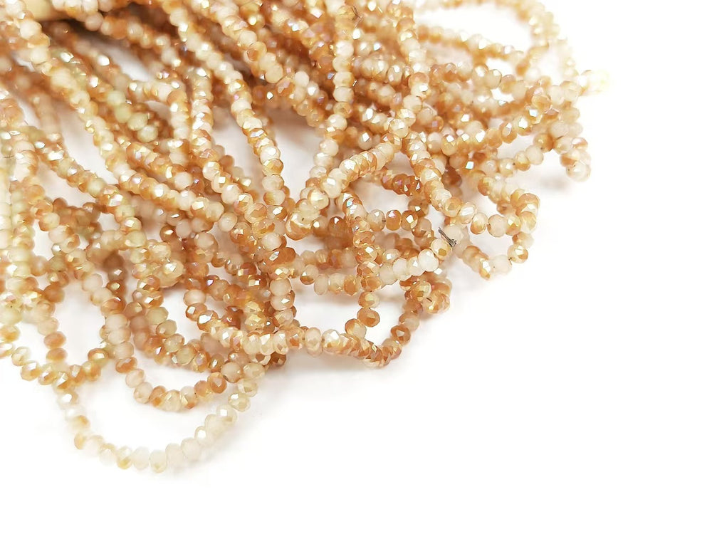 玻璃珠, 2x3mm, 切面扁珠, 果凍白 x 半邊鍍琥珀金色 (#88), 1條