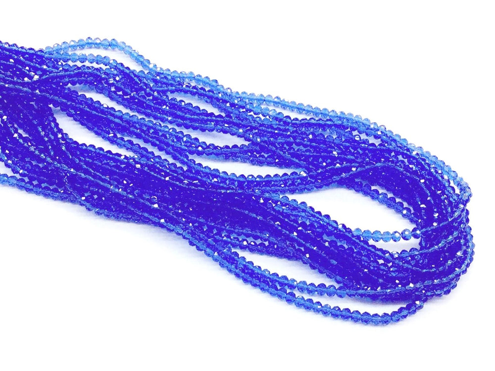 玻璃珠, 3x3.5mm, 切面扁珠, 透明中藍色 (#09), 1條