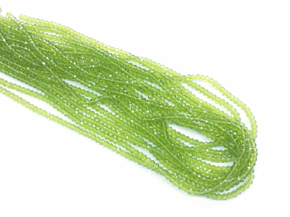 玻璃珠, 3x3.5mm, 切面扁珠, 透明橄欖綠 (#17), 1條