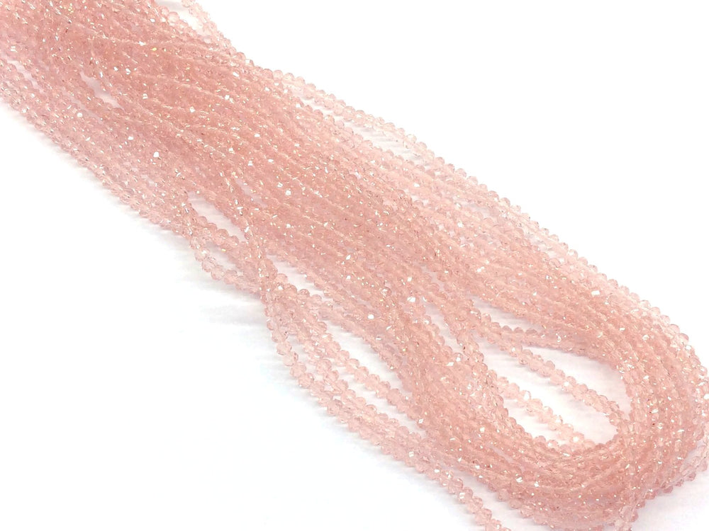 玻璃珠, 3x3.5mm, 切面扁珠, 透明水粉色 (#26), 1條