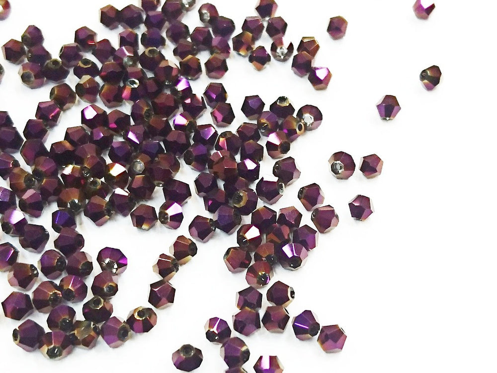 雙尖水晶玻璃, 4mm, 金屬紫, 144粒