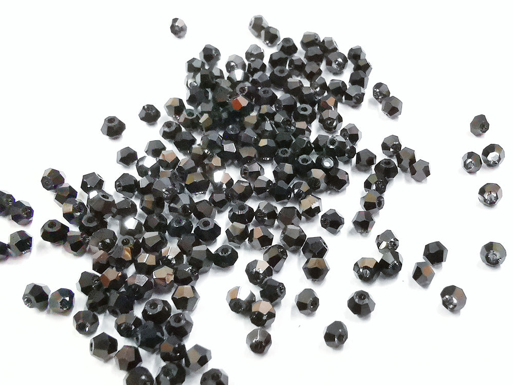 雙尖水晶玻璃, 3mm, 黑色鍍光, 144粒