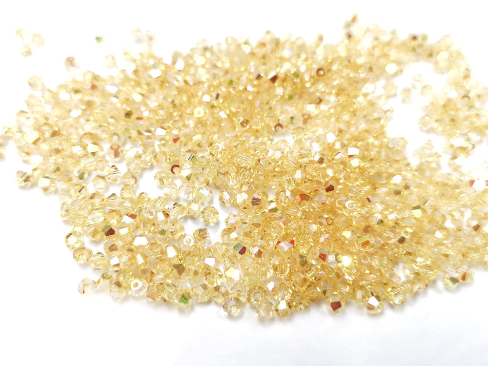 雙尖水晶玻璃, 3mm, 淺金AB, 144粒