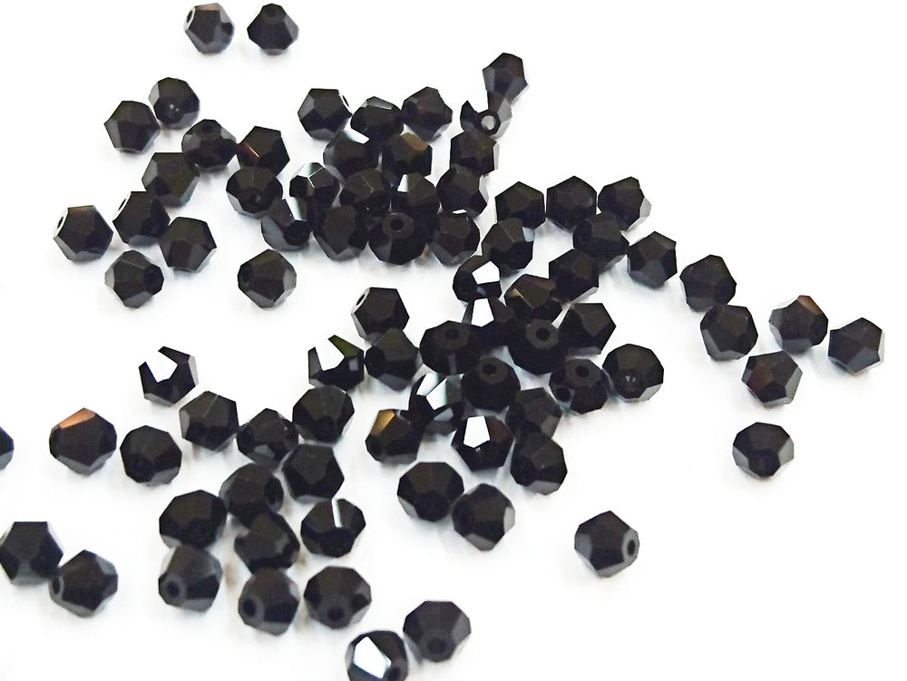 雙尖水晶玻璃, 4mm, 實色黑, 144粒