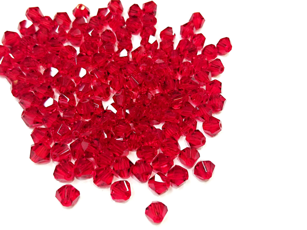 雙尖水晶玻璃, 5mm, 大紅, 72粒