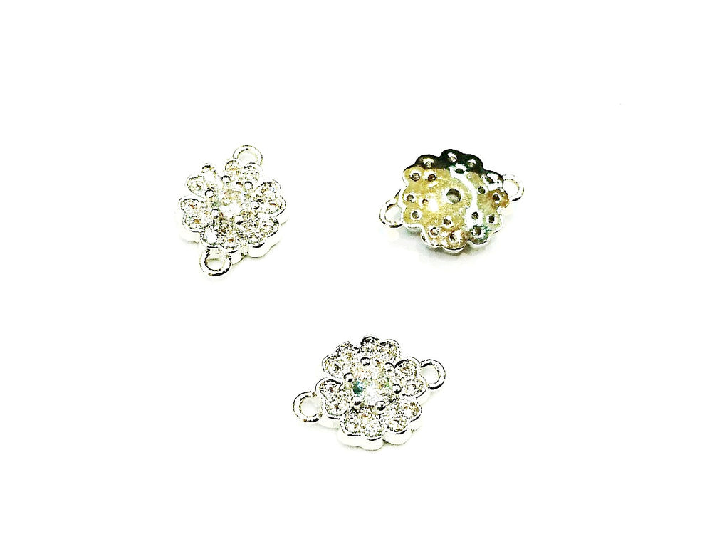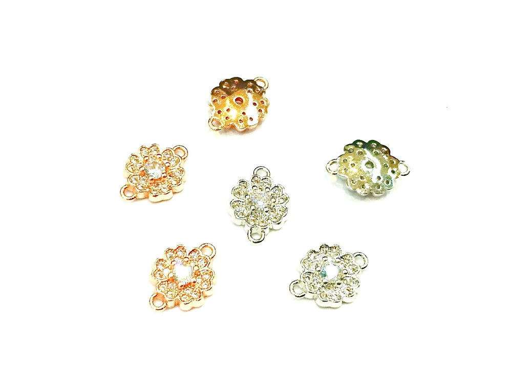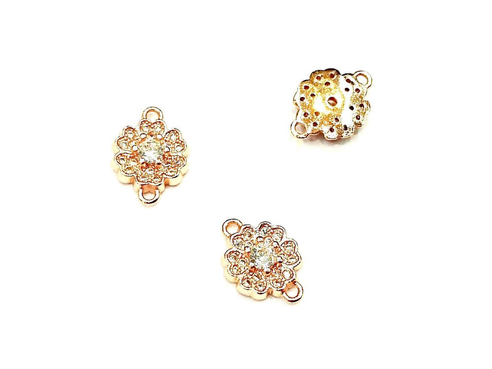 銅連接配件, 方晶鋯石, 9x12.5mm, 小花, 1個