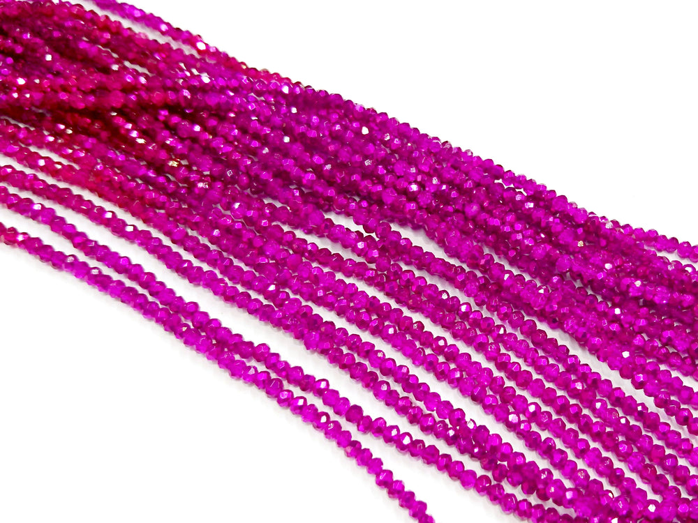 玻璃珠, 2x3mm, 切面扁珠, 深粉紅 (染色), 1條