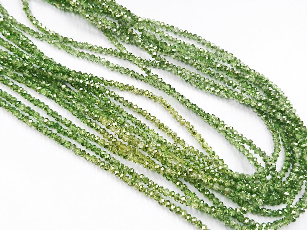 玻璃珠, 2x3mm, 切面扁珠, 綠色 (染色), 1條