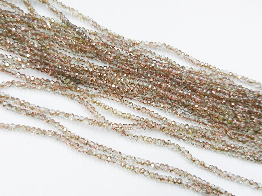 玻璃珠, 2x3mm, 切面扁珠, 淺咖啡色 (染色), 1條