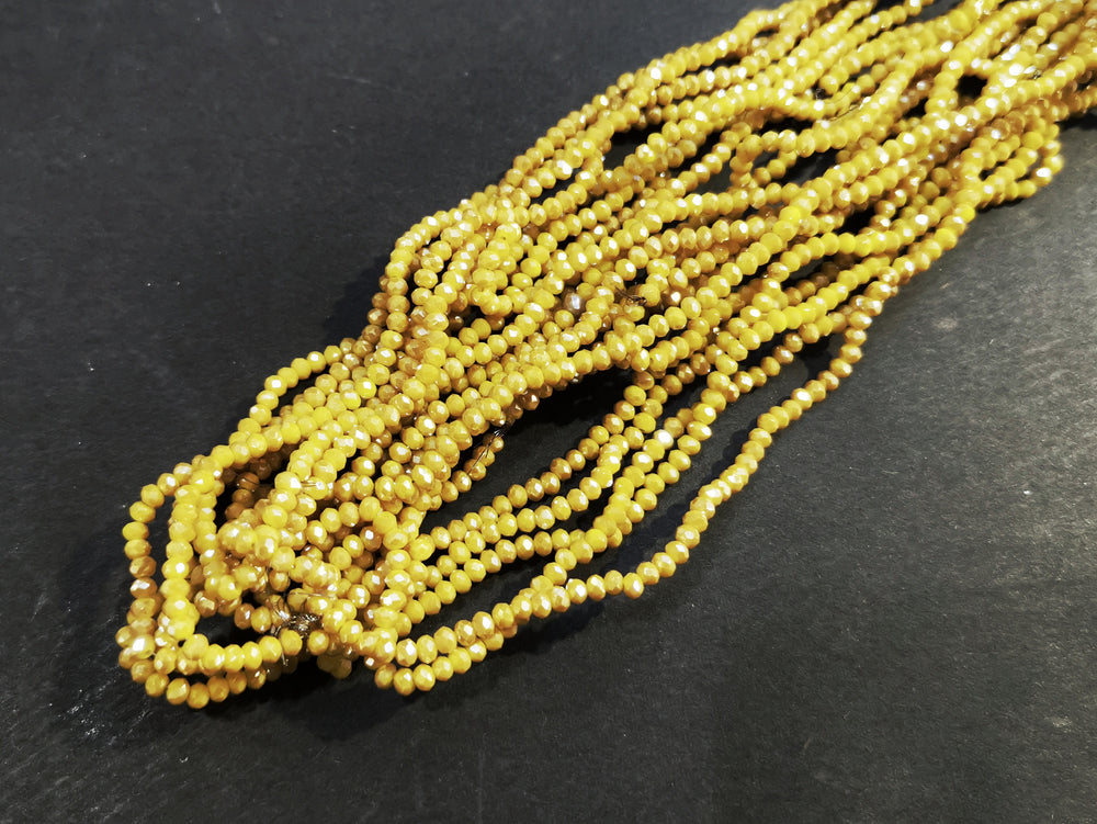 玻璃珠, 2x3mm, 切面扁珠, 實色黃 x 電鍍卡其色, 1條
