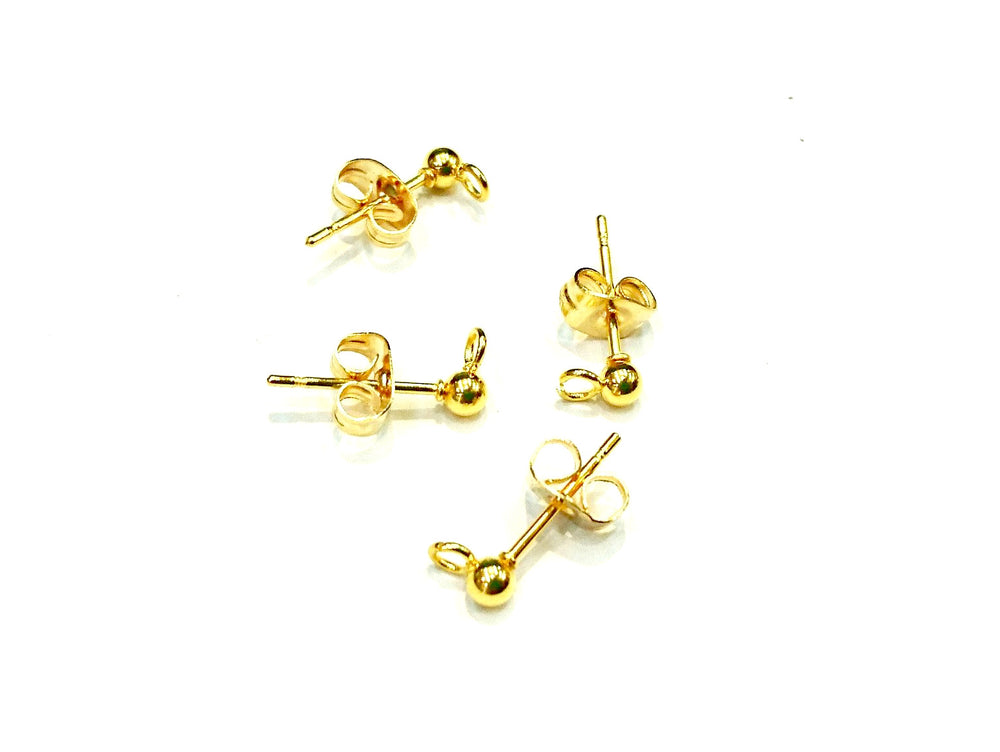 不鏽鋼耳針, 3mm圓珠金色, 2對