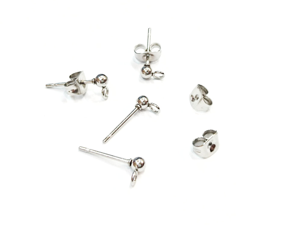 不鏽鋼耳針, 3mm圓珠鋼色, 2對