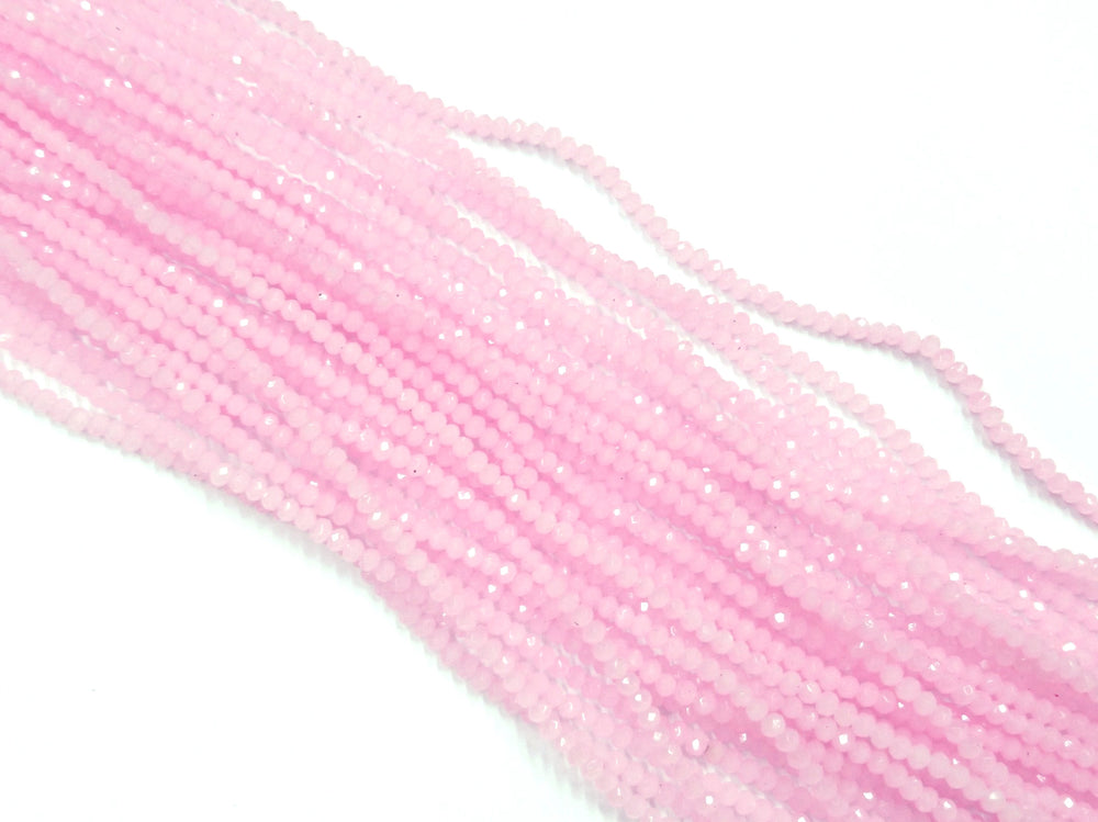 玻璃珠, 2x3mm, 切面扁珠, 果凍粉紅色 (染色), 1條