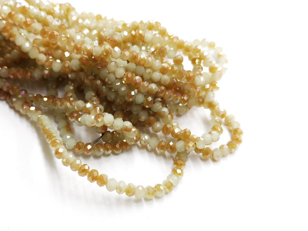 玻璃珠, 3x4mm, 切面扁珠, 果凍綠色X半鍍琥珀金色 (#93), 1條