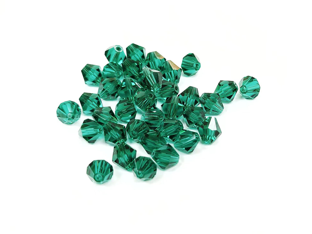 雙尖水晶玻璃, 8mm, 孔綠, 36粒