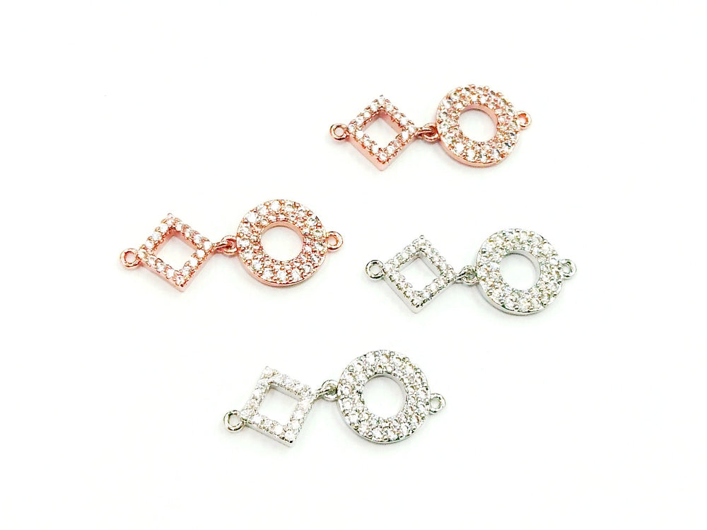 銅連接配件, 方晶鋯石, 10x25mm, 圓, 1個