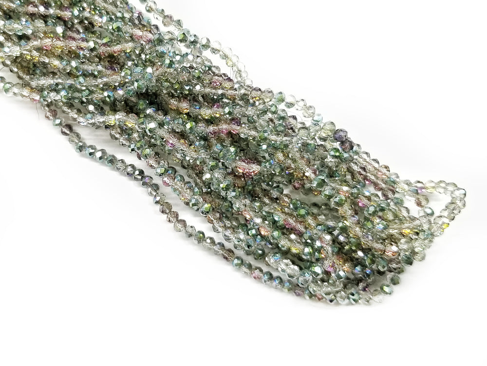 玻璃珠, 3x3.5mm, 切面扁珠, 五彩(#80), 1條