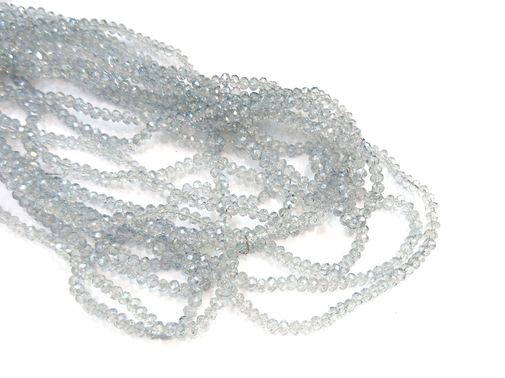 玻璃珠, 3x3.5mm, 切面扁珠, 鍍面透灰(染色), 1條